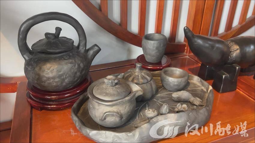 黑陶文化传承基地负责人张衡:“我们汉川杨林乌壶是湖北省非物质文化遗产,这个器型是我们杨林乌壶最具有代表性的器型,为了实用性,走进千家万户,顺应市场化的需求,我们又设计出了很多种器型。”