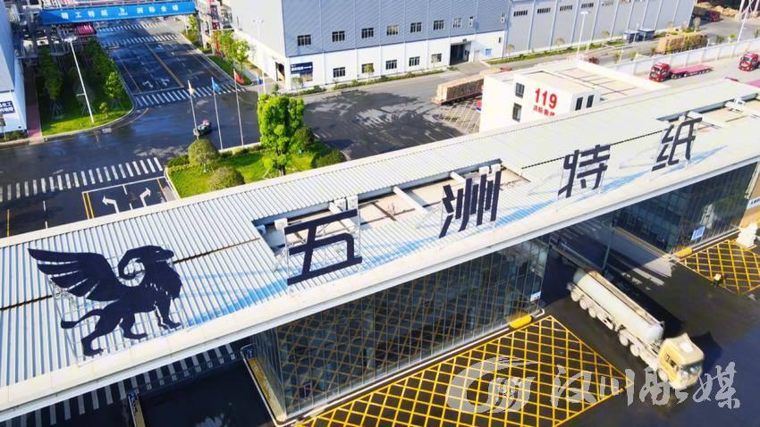 五洲特种纸业(湖北)有限公司执行总经理黄勤:“五洲特纸湖北基地第五条生产线PM21,是目前全球最大的格拉辛纸机,车速1400米每分钟,幅宽8.265(米)产值大概在30亿元,产能在30万吨每年。”
