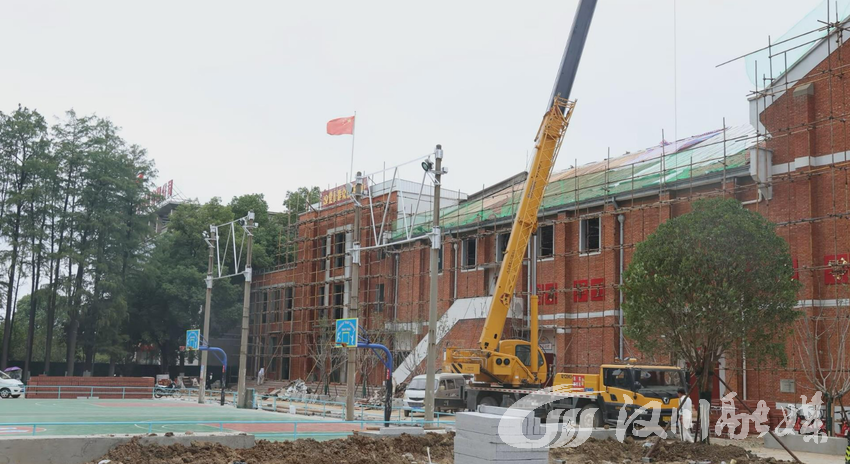 在3509社区改造现场,机械轰鸣、工人协作有序。作为社区历史记忆的重要载体,零九礼堂正在进行屋顶换瓦作业,建筑外围绿化工程也同步推进,党员群众服务中心外墙正在进行清洗和修补。据悉,此次改造严格遵循“保持原有建筑风格”的原则,选用与传统风貌相协调的材料与色彩,在提升建筑功能的同时,延续社区历史文脉。
