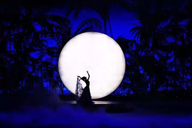 一开场,100名舞者,配合高科技影像,为观众们呈现了一个绚丽的敦煌莫高窟盛景,拉开大幕。