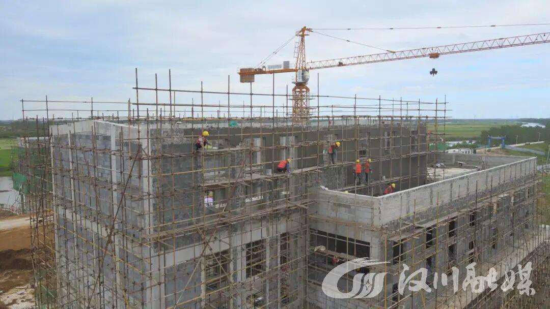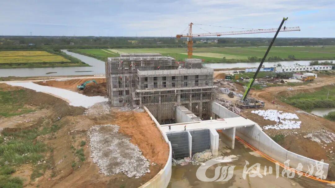 老观湖上连四龙河,下游与汉北河、汈汊湖等河湖相连,流域面积230平方公里。由于排水通道不畅,导致老观湖流域多年以来渍涝灾害频发,严重制约当地发展。为彻底解决这一问题,2024年6月,老观湖泵站正式动工。目前,项目主体结构已全面封顶,正式转入设备安装与内部装修阶段。