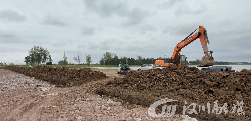2025 年国庆假期临近尾声,汉川汈汊湖湿地公园西阳光草坪项目建设现场仍是一派繁忙景象,施工队伍放弃休假全力推进工程进度。