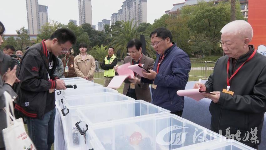 比赛现场,布置整齐的评比席与透明的玻璃器具依次排开。围观群众或拍照打卡,或为心仪的“蟹选手”加油助威,现场气氛热烈。一个个精心挑选的“蟹选手”张牙舞爪、活力十足,参赛代表自信满满地向评委和观众介绍自家河蟹的特色和优势。评委们从河蟹的体型、体色、活力和饱满度等多个维度进行严格评比。