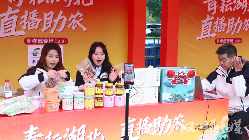 作为本次市集的一大亮点,“青耘中国”直播助农活动专区同步启动。多位青年主播通过线上平台,向全国网友推介天屿湖河蟹等本土农产品,以“电商+直播”方式推动农产品“出村进城”。直播中,主播们不仅细致讲解产品特色,还与观众积极互动,分享丰收故事,带动线上销售热潮。