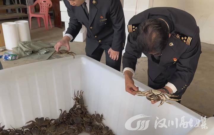 为保障河蟹鲜活度,武汉汉阳海关提供“上门服务”,对河蟹活力、外观、重量等指标进行严格检验。检验合格后现场封箱,确保河蟹以最佳状态运往泰国。