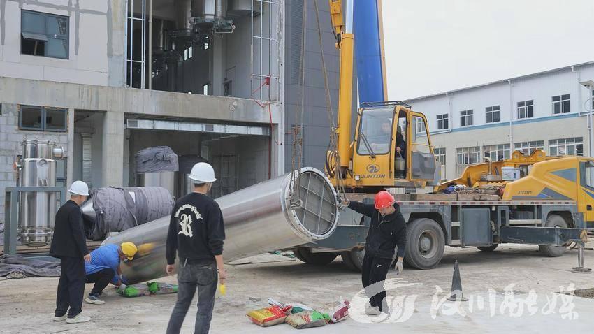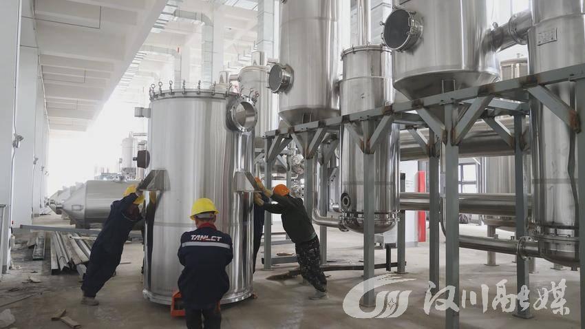 项目施工现场,机械轰鸣,施工人员干劲十足。厂房外,大型吊机将管道输送至生产车间;厂房内,工人们忙着调试安装智能化生产线。目前,提取车间主要生产设备已安装就位,庞大的中药提取装置与纵横交错的管道系统构成了车间的核心部分。