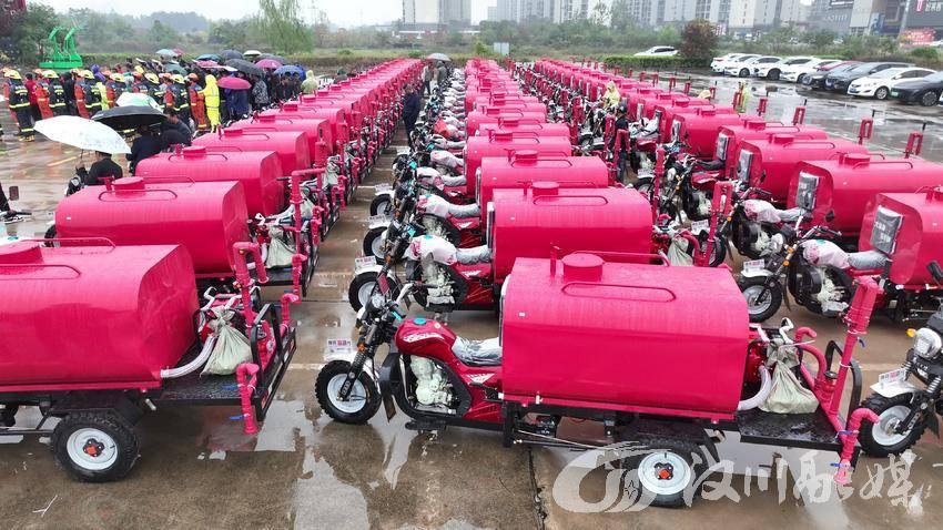 启动仪式上,128台崭新的流动消防车整齐列队。市委常委、常务副市长周显甫为第一批建设农村微型消防站的乡镇发放流动消防车钥匙。这批流动消防车体积小巧、操作便捷、适应性强,能够快速响应农村地区火灾警情,有效解决农村道路狭窄、大型消防车通行不便等问题,为守护农村群众生命财产安全增添“硬核”力量。