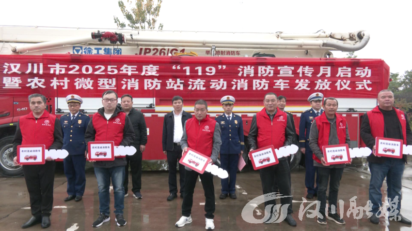 11月6日,汉川市举行2025年“119”消防宣传月启动仪式暨农村微型消防站流动消防车发放活动。市委常委、常务副市长周显甫出席活动。