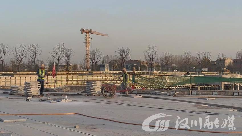 沿江高铁汉川北站站房已基本呈现出全新面貌,内部设施调试工作稳步推进。围绕车站运营所需的站前广场、高架匝道桥、站前大道东延段、站东路、站西路等一系列配套工程也在加紧建设中。