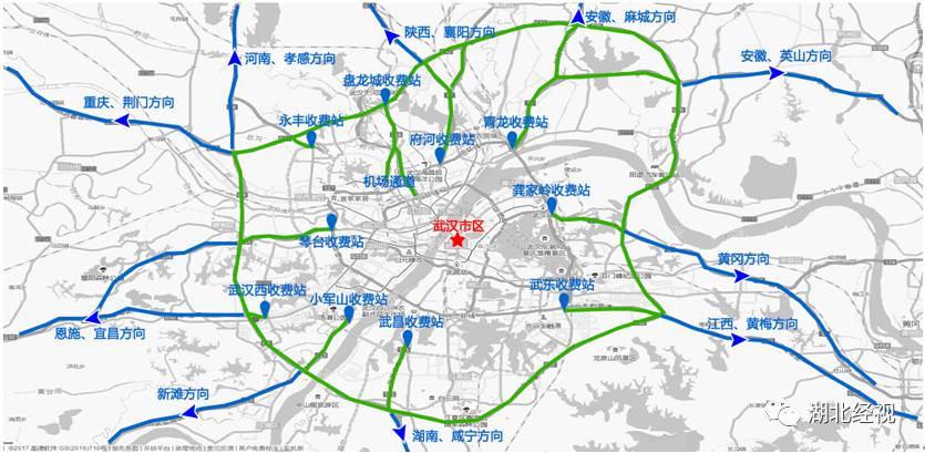 武汉周边有青郑、武黄、武鄂、汉英、岱黄、京港澳等多条高速出入城区,都与武汉绕城高速互联互通,同时,各收费站口与三环线之间的连接线都比较方便。在高峰时段出入武汉时,可选择避开府河、龚家岭等易拥堵站点,通过绕城高速和武汉三环绕行,由其他站点出入城区。