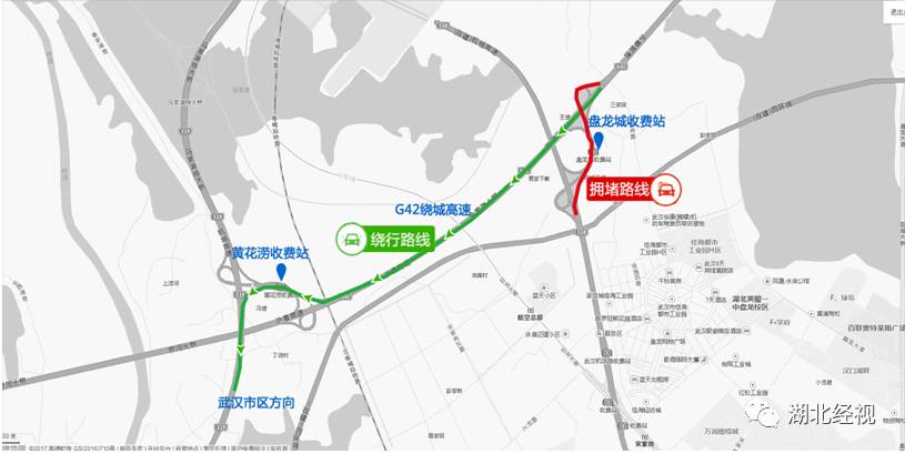 建议绕开武汉绕城高速盘龙城收费站,可以通行机场二通道高速黄花涝收费站进出武汉市区。