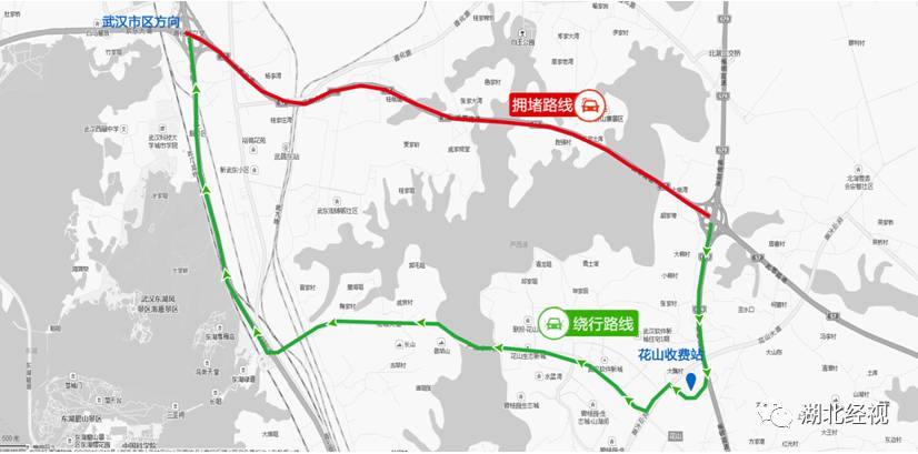 建议武鄂高速的车辆从邹黄互通进入武汉绕城高速,从花山收费站进出武汉市区,避开拥堵路段。