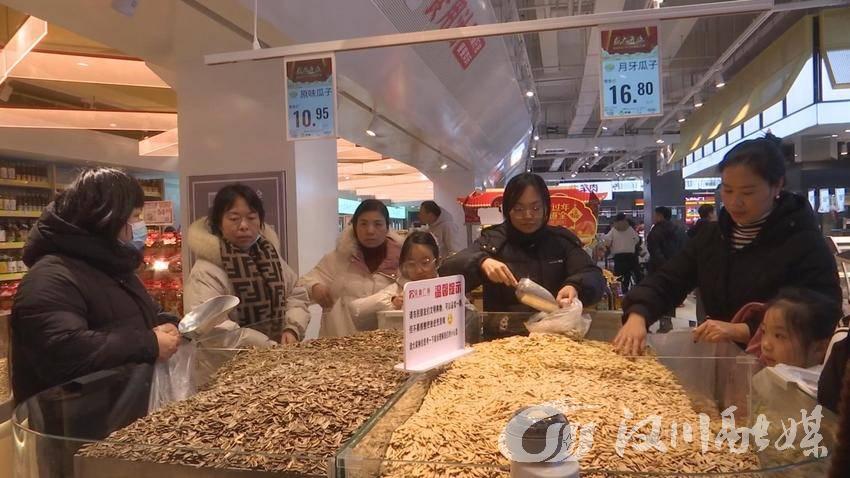 “过了腊八就是年”。随着春节临近,市民开始置办年货。近日,在荣鑫广场汉川总店的年货摊位上,瓜子、花生、兰花豆等传统炒货持续走俏,本地市场迎来供销两旺的迎春景象。