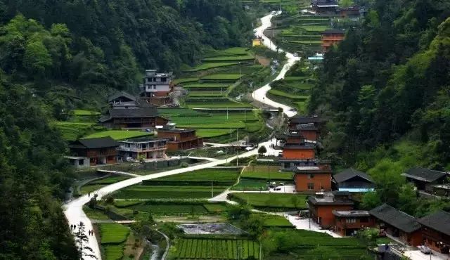 鱼木村因“悬崖脊上建寨楼,一夫把关鬼神愁”而出名,处在又是著名的地质断裂带,公路盘旋,山势险峻。