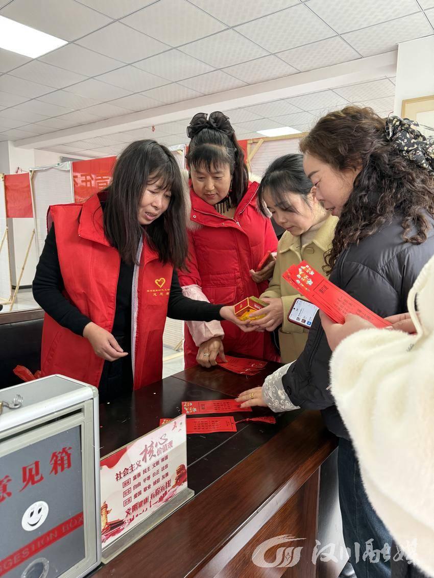活动现场张灯结彩、喜气洋洋,精心准备的50条灯谜错落悬挂,内容涵盖廉洁家风、传统民俗、反诈禁毒三大类,融知识性、趣味性与教育性于一体。大家兴致盎然、踊跃参与,或驻足沉思、或相互探讨,在猜谜解谜中感受传统文化魅力,在欢声笑语中增进交流情谊。猜中谜底的群众依次兑换精美礼品,现场氛围热烈温馨。