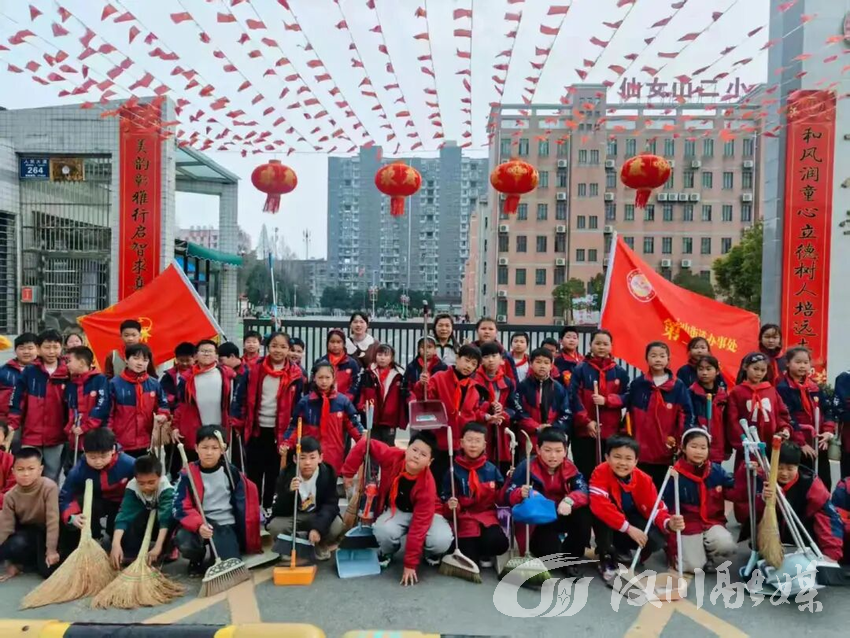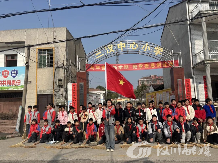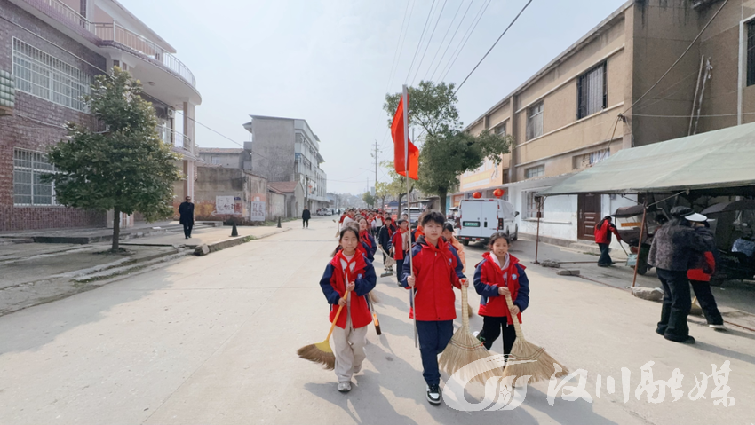 三汊中心学校组织少先队员开展街道清扫志愿服务,少先队员们走上街头,对街道进行集中清扫。大家不怕脏、不怕累,不放过任何一个卫生死角,赢得了周边居民的连连称赞。