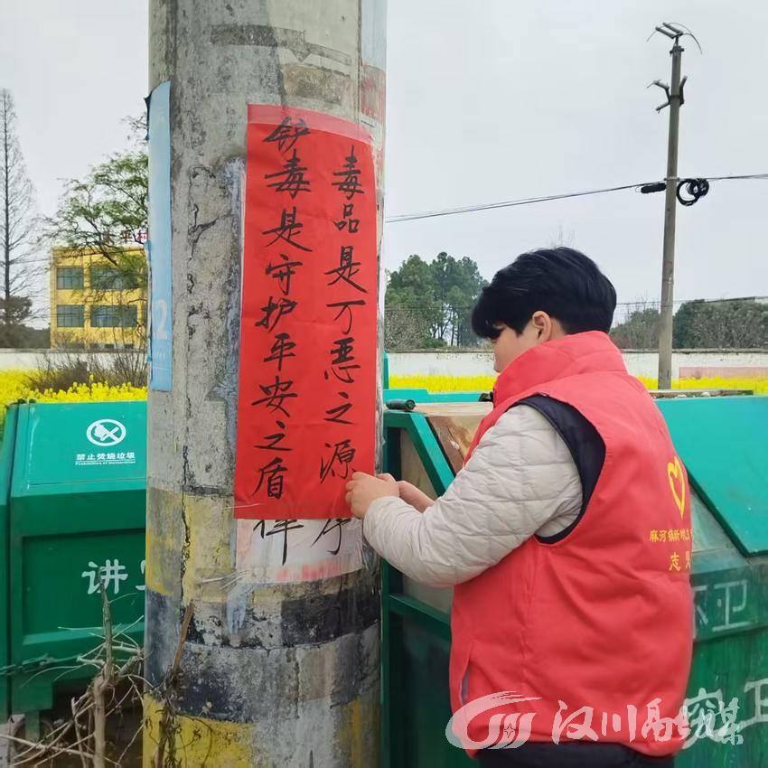 近日,汉川市麻河镇各村掀起禁毒宣传热潮,志愿者们深入各村组、走村入户,将一幅幅手写禁种铲毒标语,精心张贴在村口显眼位置、电线杆等群众易见之处,以接地气、有温度的方式,向村民普及禁毒知识、传递禁毒理念。