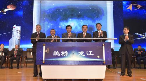 5月即将发射的嫦娥四号中继星在24日“中国航天日”主场活动开幕式上正式命名为“鹊桥”,其搭载的由哈工大研制的两颗小卫星分别命名为“龙江一号”和“龙江二号”。