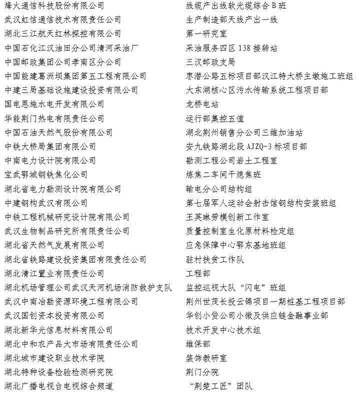 湖北省工人先锋号候选对象名单