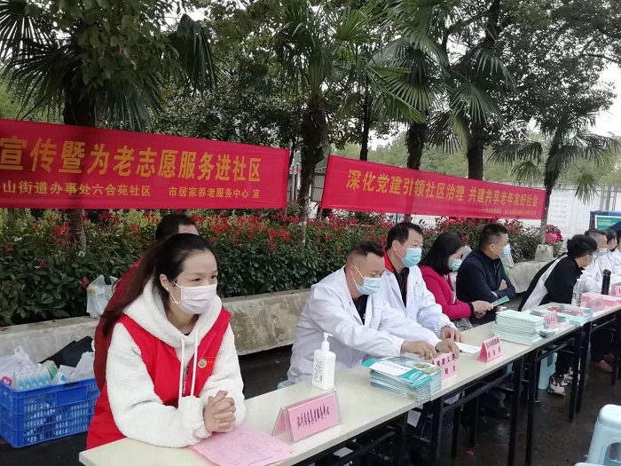 重阳将至,根据《汉川市老龄委关于深入开展2020年“敬老月”活动的通知》要求,为了体现对老年人的关心关爱,进一步深化党建引领社区治理,汉川市卫生健康局联合仙女山街道办事处六合垸社区组织开展“情暖重阳”老龄政策和健康知识宣传暨为老志愿服务进社区活动。市仙女山街道办社区卫生服务中心、皮肤病防治所、市疾控中心、市计生协、市居家养老服务中心、市人寿保险公司等单位积极参与,局相关股室人员和部分单位到社区报道下沉党员也参与了此次活动。