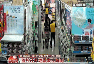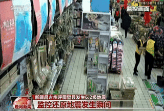 距本次地震震中最近的呼图壁县周边多地震感明显,下面是一组监控画面记录下来的地震发生瞬间。