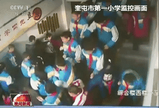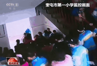 △监控画面显示,地震发生时,监控摄像头出现明显晃动,紧接着,近千名小学生在老师的组织下,从室内紧急转移到室外安全地带。