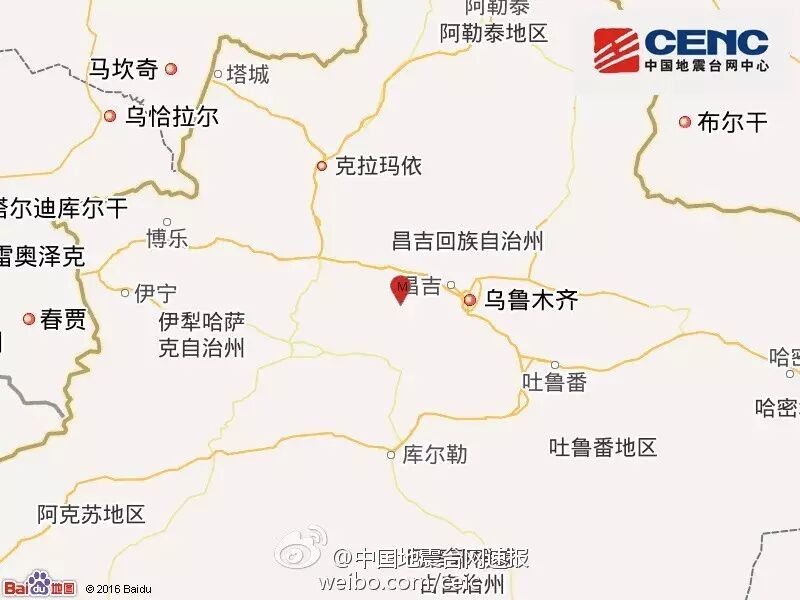 呼图壁县发生6.2级地震震源中心距玛纳斯县54公里、呼图壁县城60公里,距乌鲁木齐103公里,北天山地区震感强烈。专家介绍,地震发生地位于于三山两盆地(昆仑山、阿尔泰山、天山。准格尔盆地、塔里木盆地)之间,属于地震多发地带。