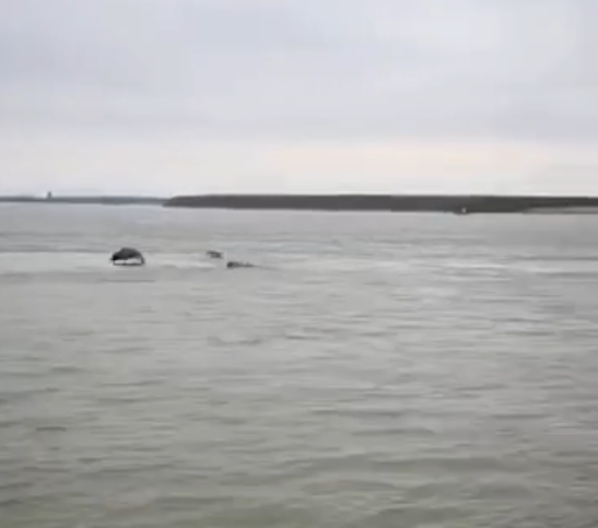 今天(12月26日)下午1点左右,有市民在汉江汉川段(汉川电厂附近)拍到一群江豚在江面腾空跳跃、追逐嬉水,数量大约有四五只。它们仿佛在用欢快的江天舞蹈表演,回馈救过搁浅江豚的汉川“亲人”。